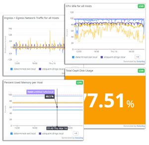 OpenMetal Clouds rely on Datadog to execute real-time monitoring of performance metrics and events on the OpenStack platform that powers OpenMetal Clouds, as well as the underlying Ceph distributed storage layer.