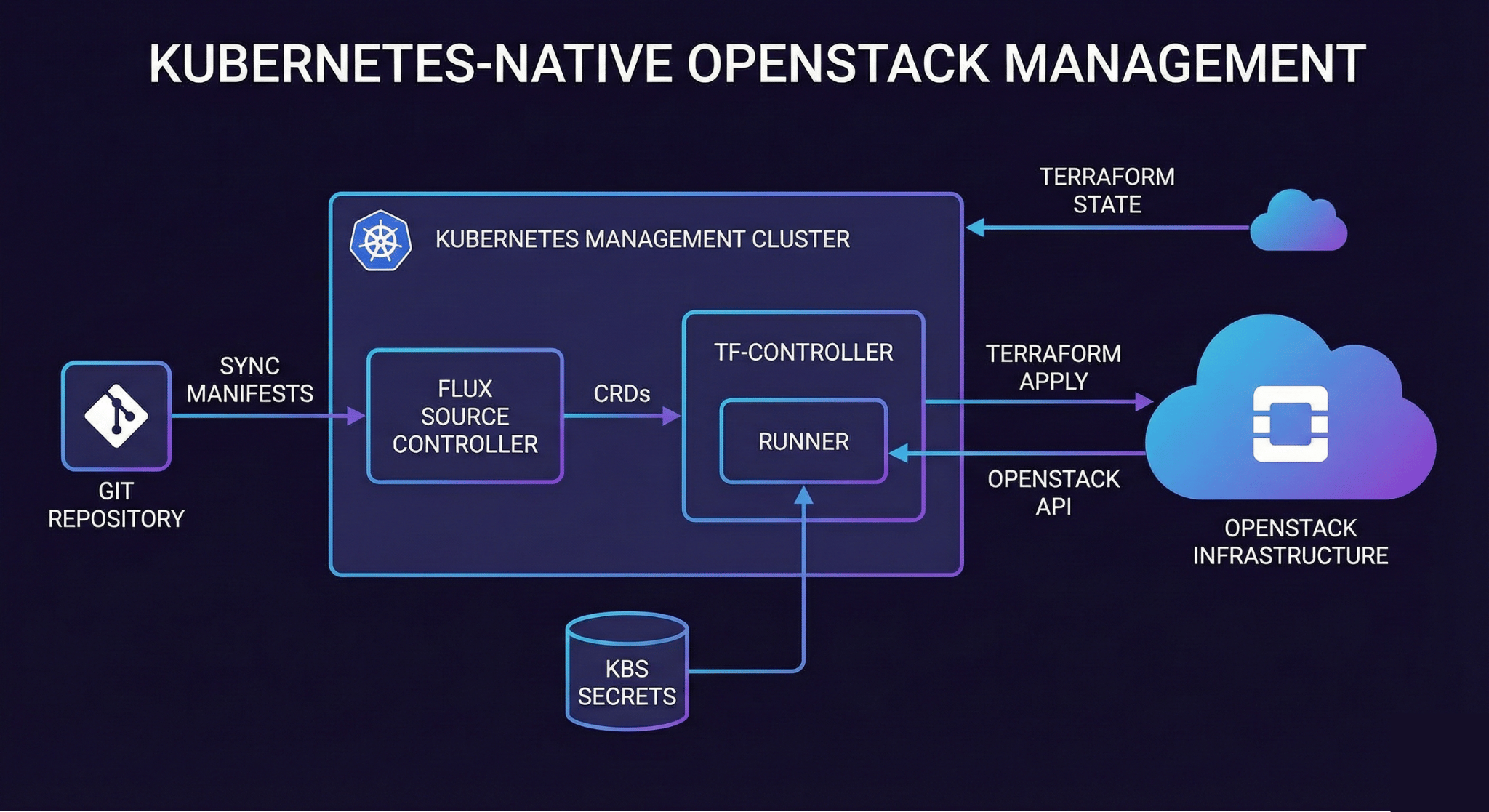 GitOps tools evolved primarily for Kubernetes. ArgoCD and Flux both handle Helm charts and Kubernetes manifests beautifully. But OpenStack infrastructure typically gets managed with Terraform, and Terraform isn’t a native fit for these tools.